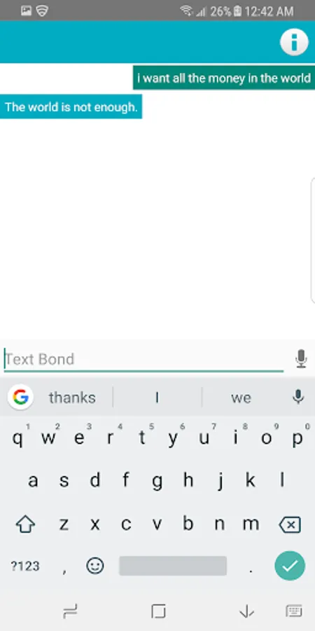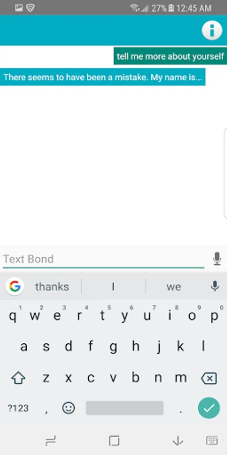 Ever wanted to talk to James Bond? Here's the app to chat with James Bond. This app responds to you just like the way James Bond would.