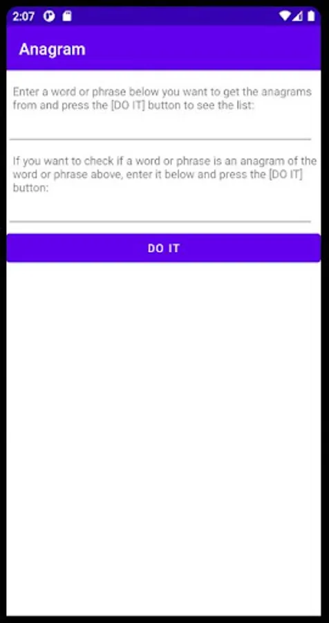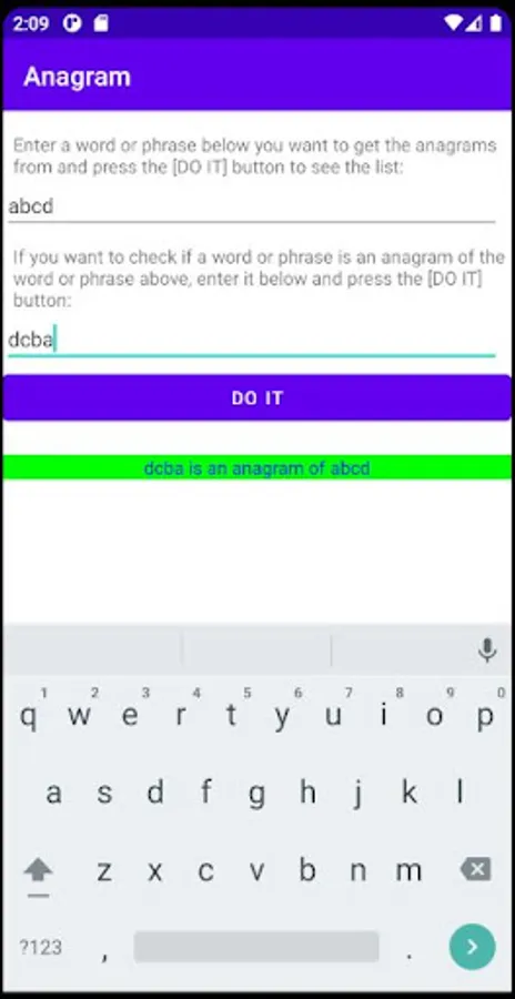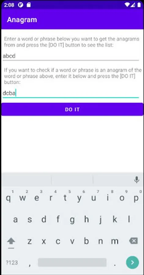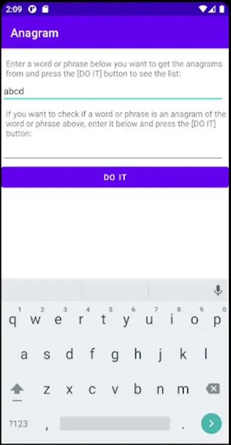 With this application you can view all the anagrams of a word or understand if a word is the anagram of another word.