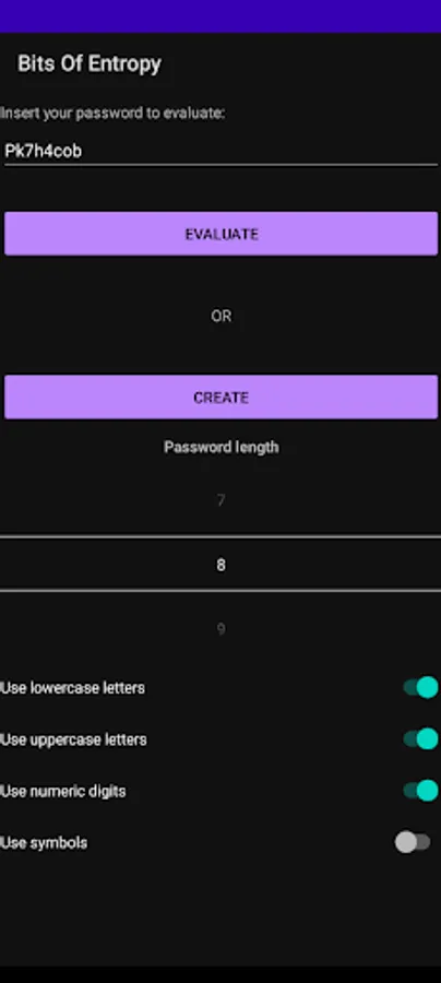 Calculate the entropy of the security key (password) without transmitting it via the Internet, in this way you will be able to evaluate the degree of security of your password without running the risk of it being used or shared improperly.