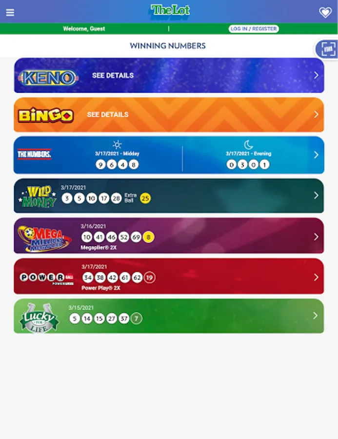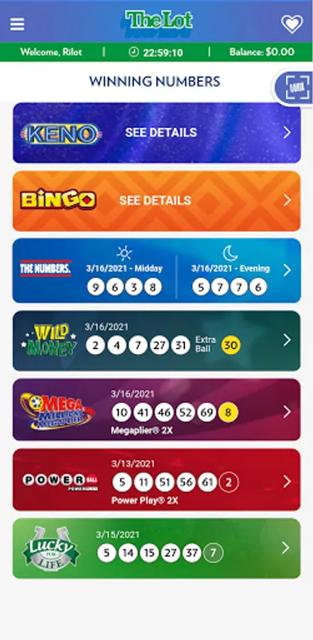 • Check winning numbers for Powerball®, Mega Millions®, Lucky for Life®, Wild Money, The Numbers, Keno and Bingo.