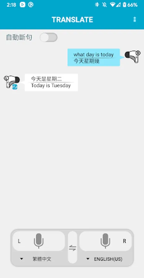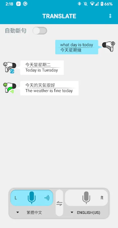 4. "Long press" the language button on the app to achieve the same effect as pressing the button of the headset.
