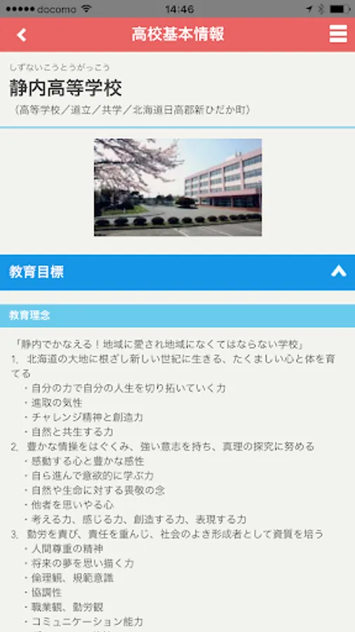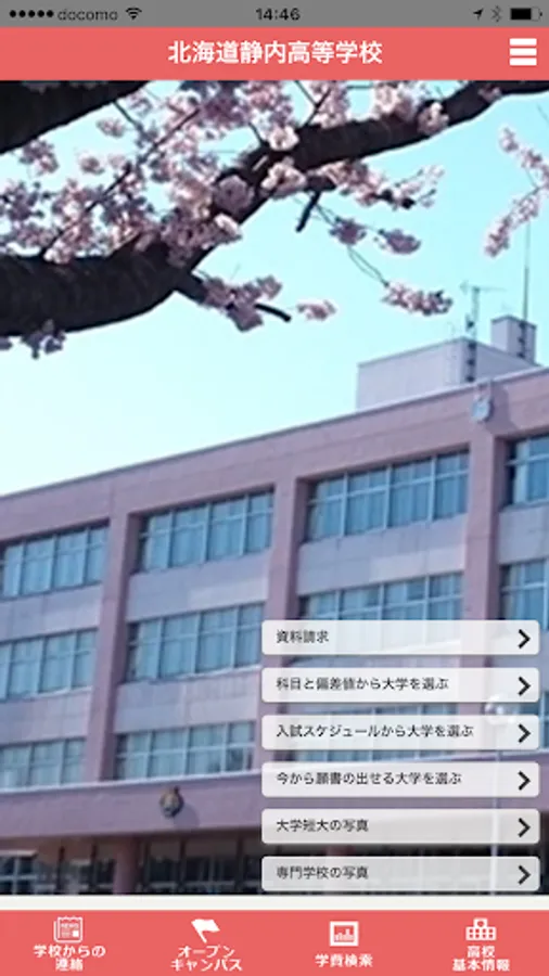 静内高校進路アプリでは、大学受験などに役立つ進学情報(オープンキャンパス情報、学費情報など)や、北海道静内高等学校の基本情報(所在地、電話番号など)を掲載しています。