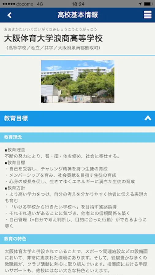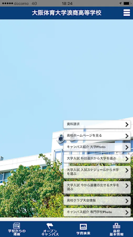 大体大浪商アプリでは、大学受験などに役立つ進学情報(オープンキャンパス情報、学費情報など)や、大阪体育大学浪商高等学校の基本情報(所在地、電話番号など)を掲載しています。
