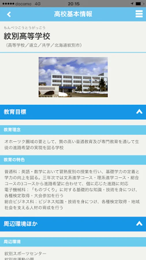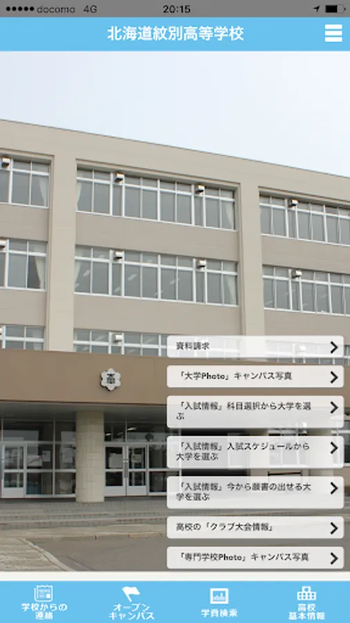 紋別進路アプリでは、大学受験などに役立つ進学情報(オープンキャンパス情報、学費情報など)や、北海道紋別高等学校の基本情報(所在地、電話番号など)を掲載しています。