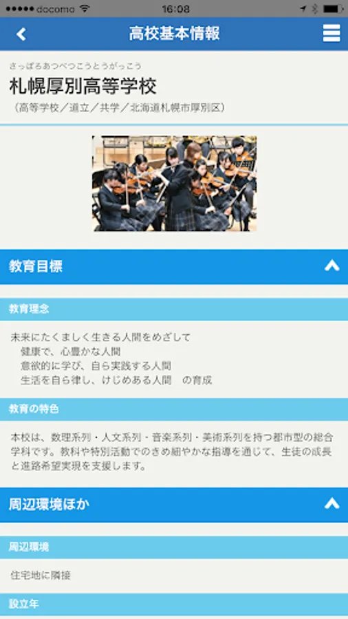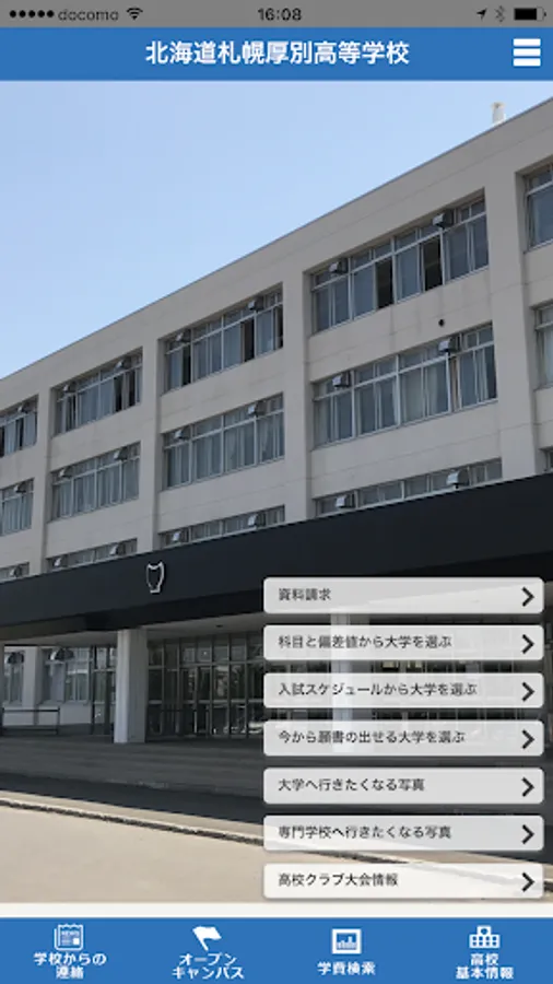 札幌厚別アプリでは、大学受験などに役立つ進学情報(オープンキャンパス情報、学費情報など)や、北海道札幌厚別高等学校の基本情報(所在地、電話番号など)を掲載しています。