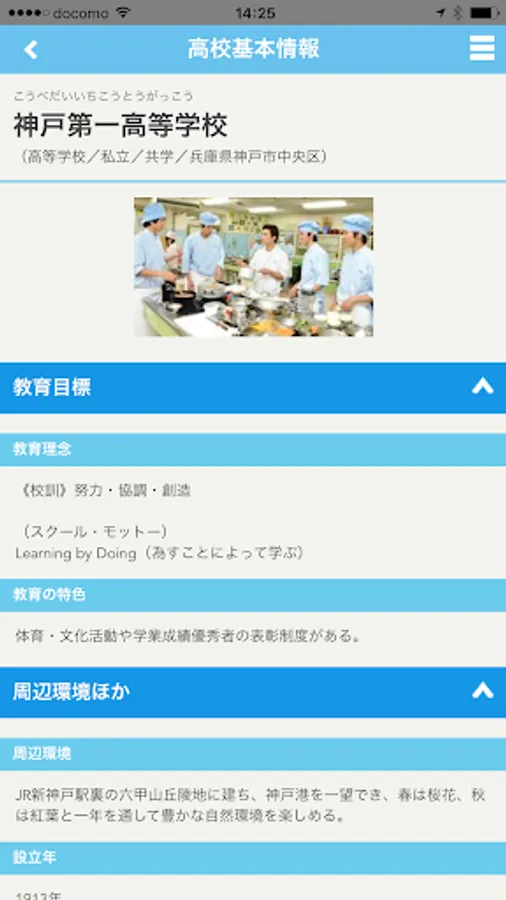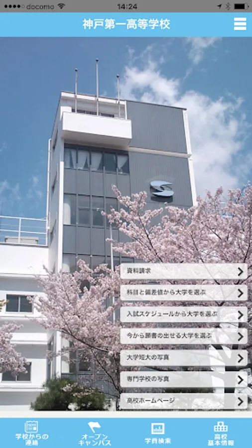 神戸第一高等学校アプリでは、大学受験などに役立つ進学情報(オープンキャンパス情報、学費情報など)や、神戸第一高等学校の基本情報(所在地、電話番号など)を掲載しています。