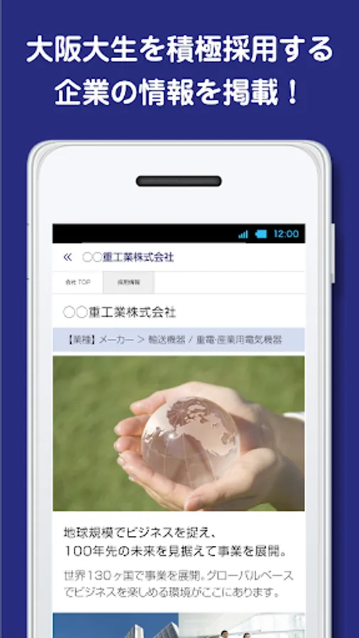 大阪大学生を積極的に採用する企業を紹介。企業の特長や強みなど、企業を知る上で役に立つ情報です。