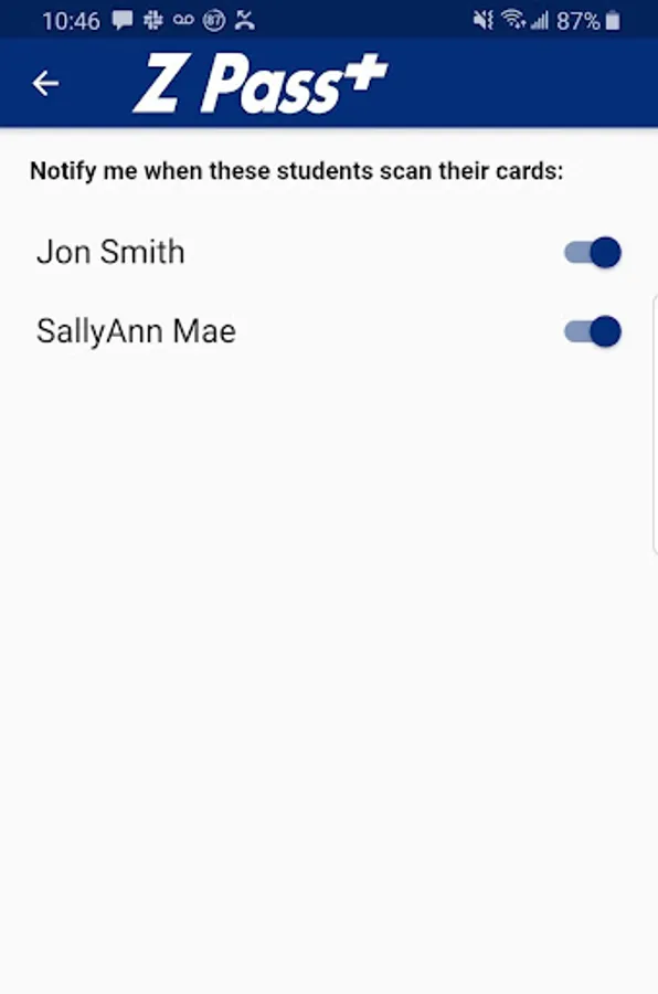 Parents log in to the secure Z Pass+ website to access the bus ride information and set up instant messaging to a cell phone. They can also log in to the mobile app with their credentials to configure push notifications for instant alerts. Students already utilize Z Pass cards when they board or exit the bus, so there is no additional action from students or bus drivers.