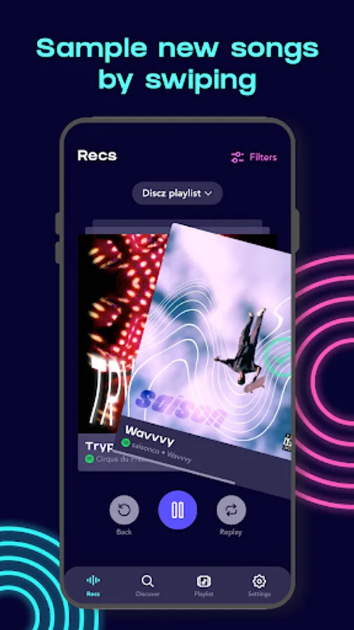 Never run out of new music again. Swipe through AI-recommended song snippets and build new playlists in seconds.