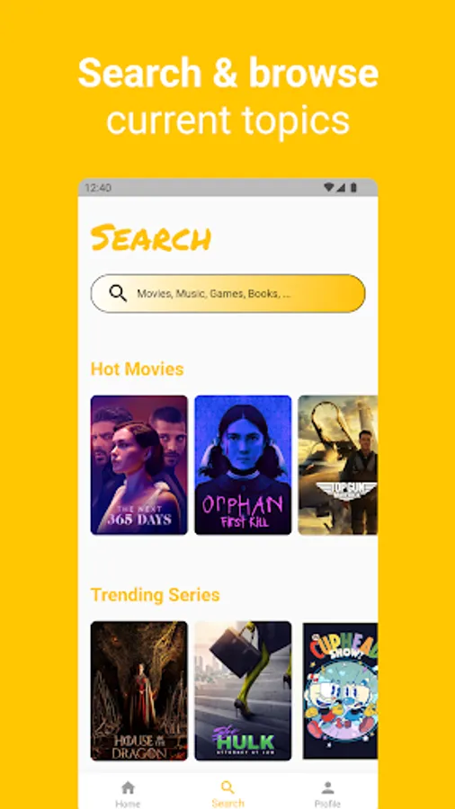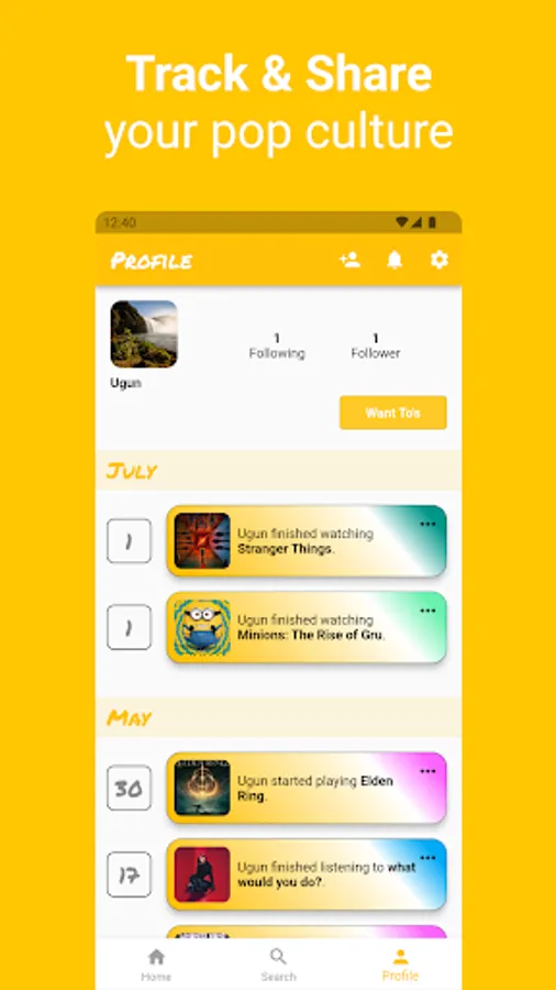 Search for your favourite songs, books, games or movies, and show others, what you are doing in your free time.
