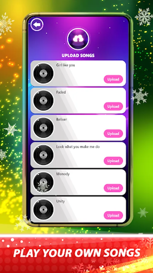 - Upload own songs from your music library.