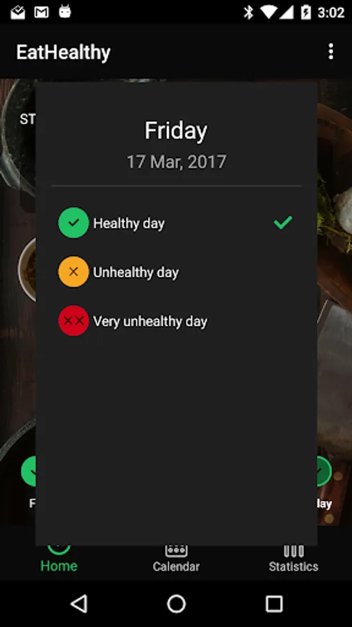 At the end of day, recall your eating choices during the day and take a "conscious" decision to rate it healthy, unhealthy or a very unhealthy day.