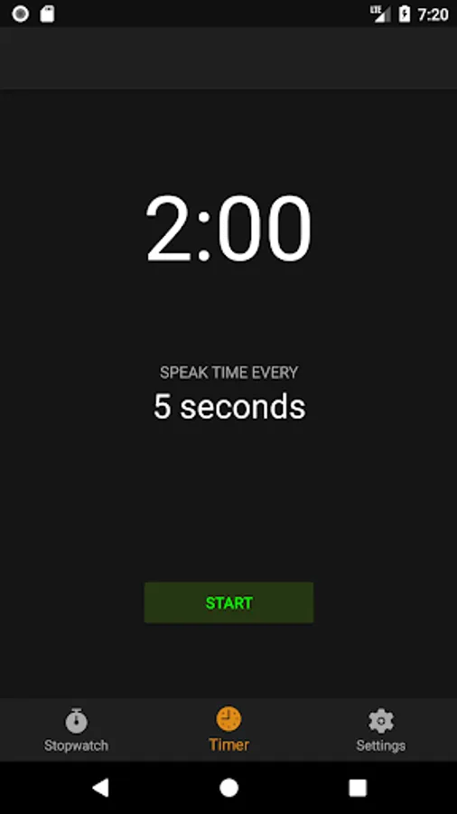 Timer: The app speaks out the remaining time at specified intervals until the timer is finished.