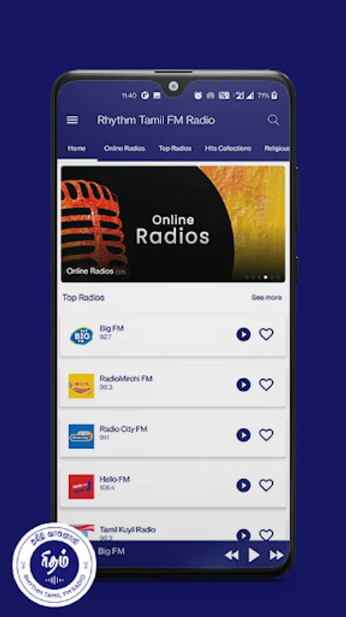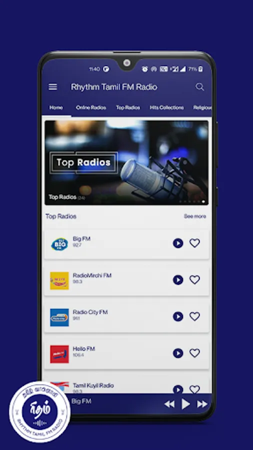 The Rhythm Tamil FM Radio Listen Tamil HD Songs Online app is a free News and Radio app with hundreds of Tamil radio channels and live news updates in real-time. Listen to the best super hit Tamil songs, play and pause them, or even group your favorite stations to tune in any time you want.