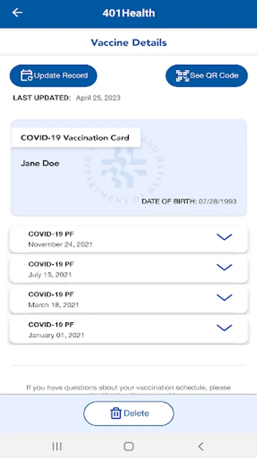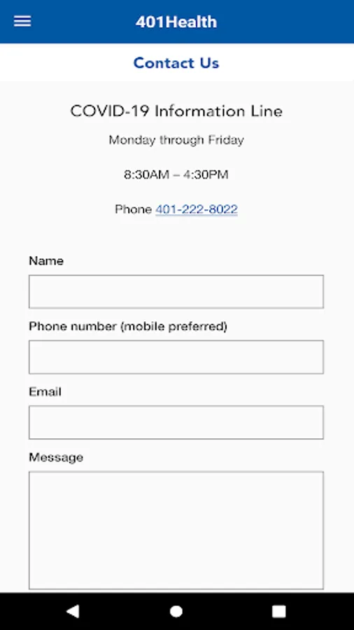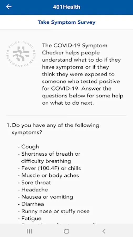 401Health provides Rhode Islanders with an easy way to track symptoms, find vaccine records, and learn about COVID-19 testing, treatment, and vaccination. All Rhode Islanders are encouraged to use the 401Health app and take an active role in slowing the spread of COVID-19 in Rhode Island. You can make a difference in the health of your loved ones and your community by helping us track the virus in our state. 401Health is a one-stop shop to get all the information you need about COVID-19 in Rhode Island.