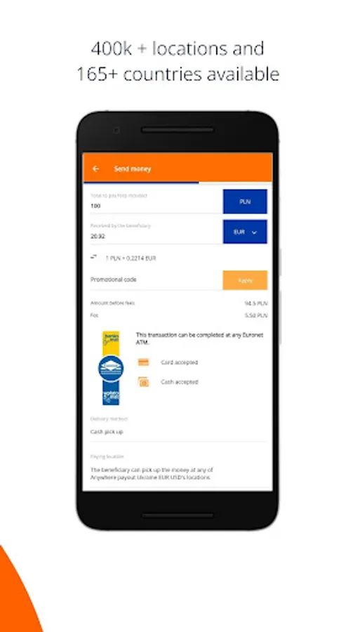 - Find your nearest Euronet ATM, scan your barcode and pay (either in cash or by card)