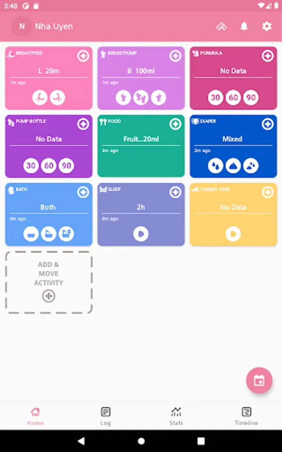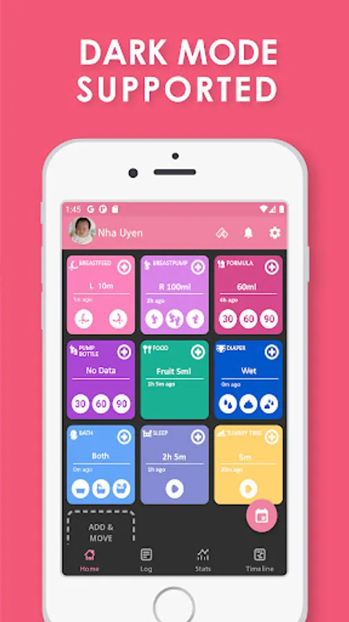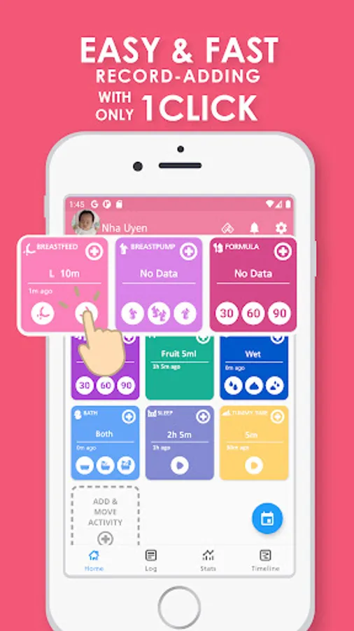 You can start tracking breastfeeding, bottle feeding for breast milk or formula, solid intake, hospital visits, diaper changes, sleep, and more with just 1 tap at the home screen! It’s fast and no fuss.
