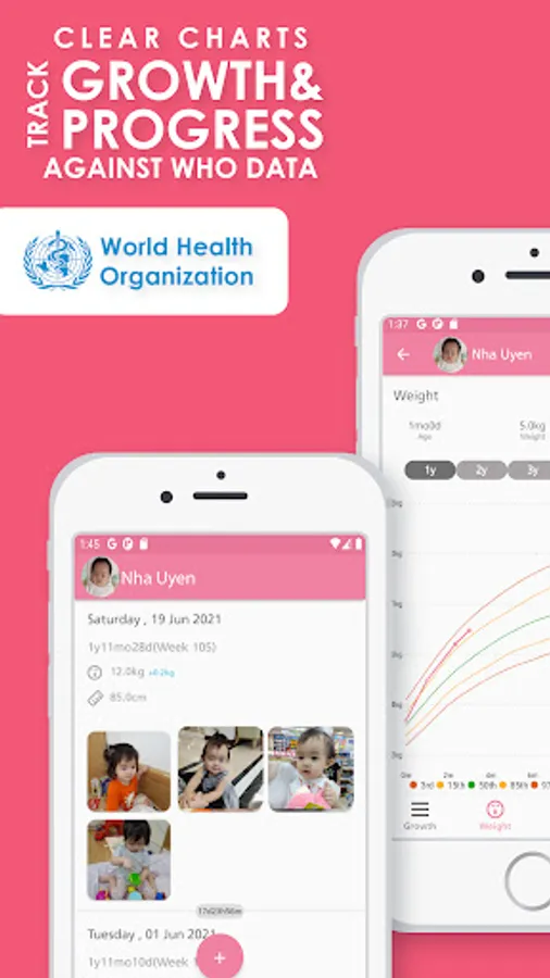 Track your baby’s growth progress of weight, height and head circumference and compare against World Health Organization’s (WHO) chart.