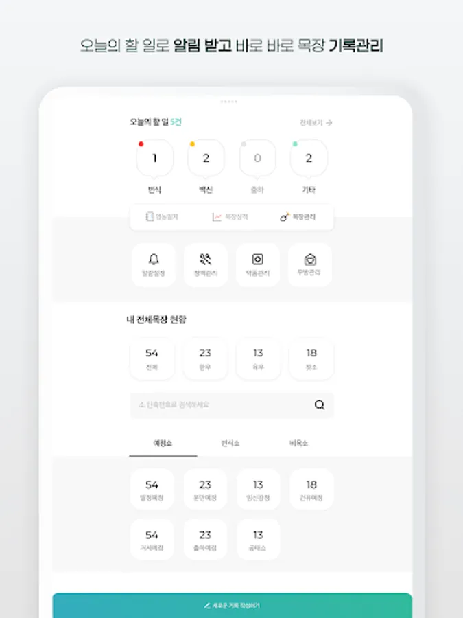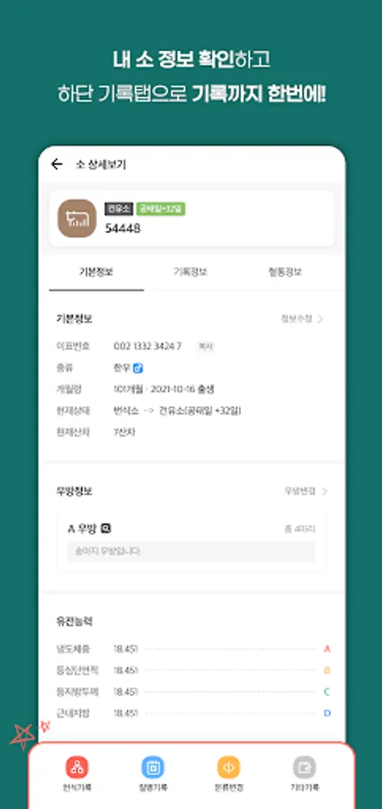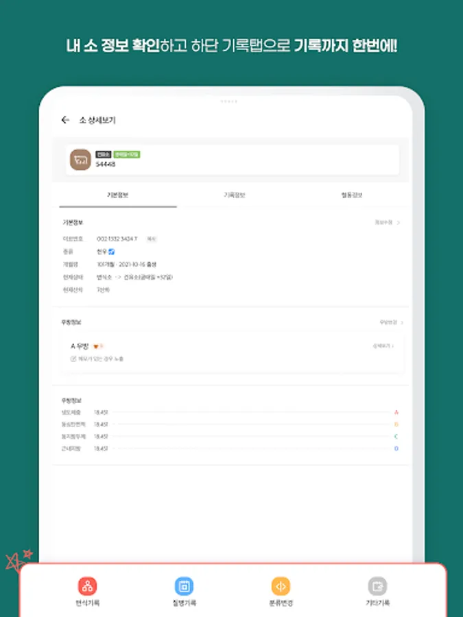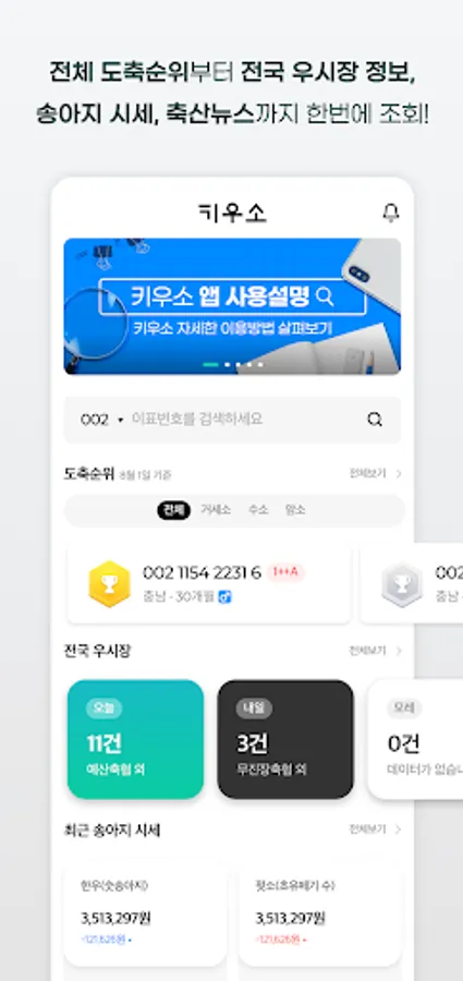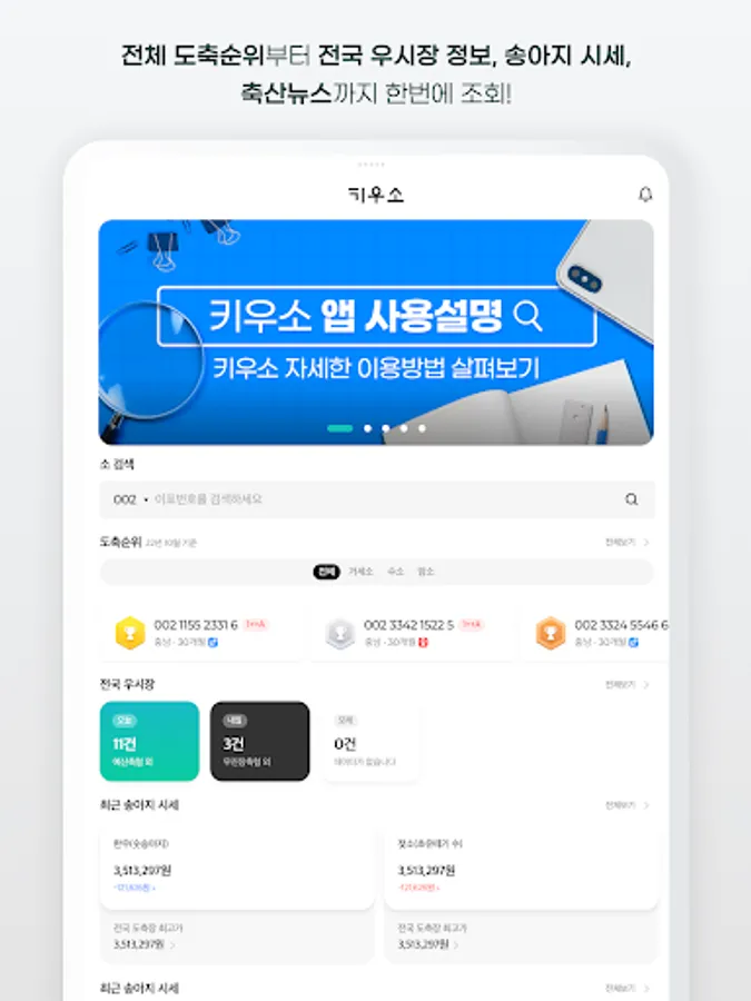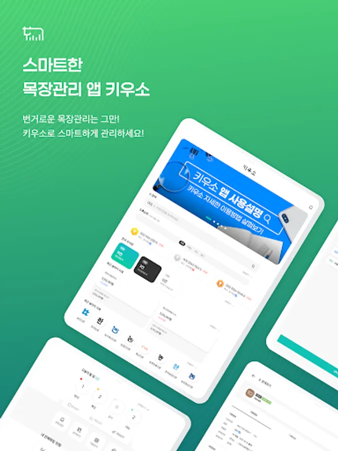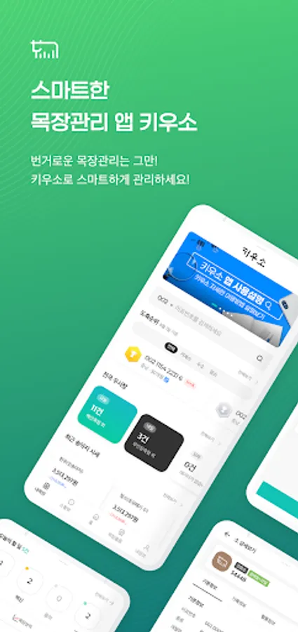 As a livestock platform service based on ranch record management, Kyuso provides various livestock information such as a convenient integrated cattle search, information on auction houses in the national cattle market, and a communication room with farmhouse members along with ranch record management essential for raising Korean cattle/dairy cattle.