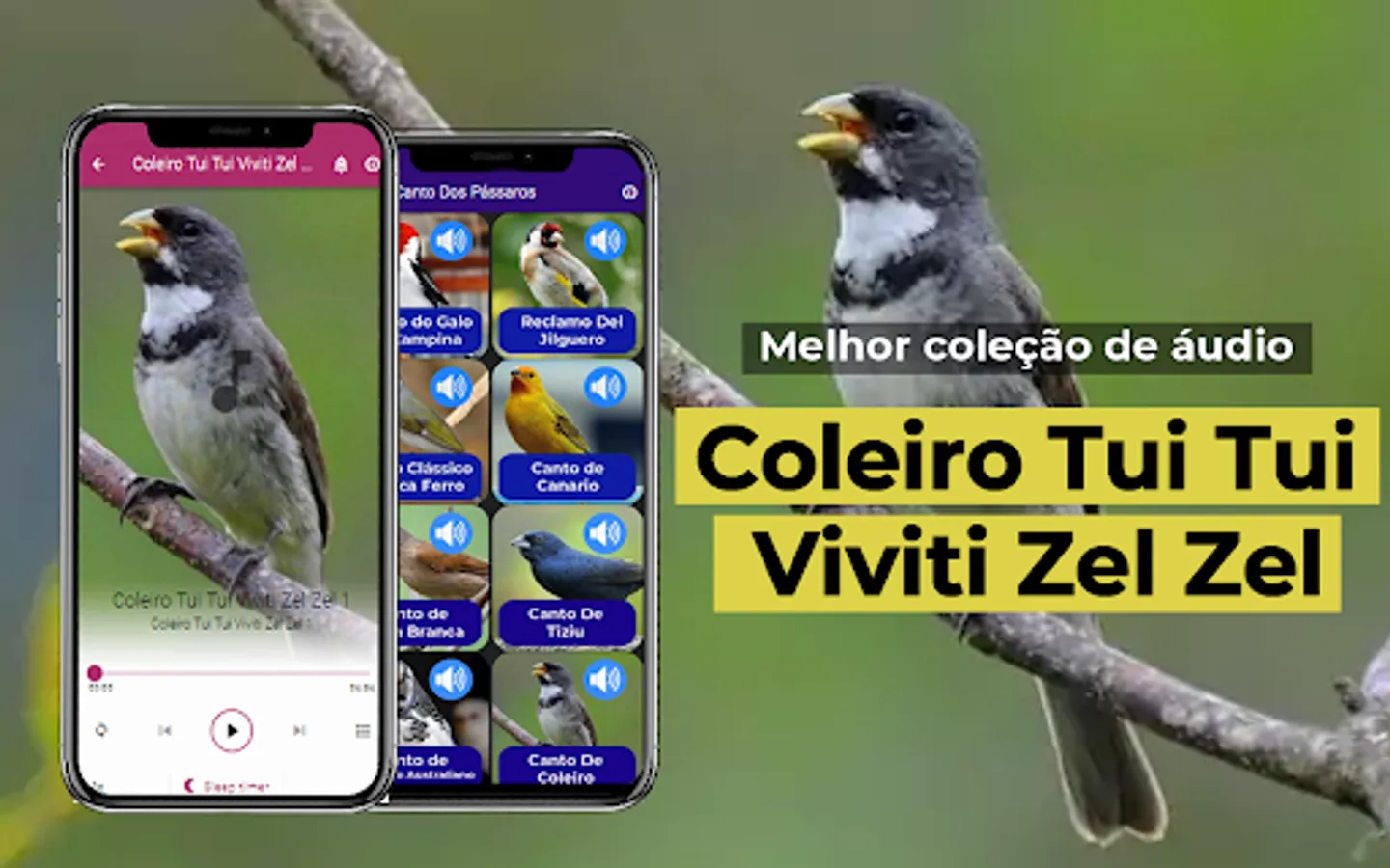 Birds are animals of the class Birds that have habitats almost all over the world. In the community itself, birds are often used as pets because of their sweet voice. In Brazil, it is not uncommon for bird lovers to hold competitions to measure which birds have the most beautiful and beautiful sounds. The more beautiful the birds sound, the more expensive the price will be. To obtain a beautiful sound, birds do not necessarily receive beautiful sounds without training and receive quality food. To become Champions of Chirping, birds need to be trained continuously and the provision of quality food will affect the birds' own singing. Responding to the huge hobby of our people in Brazil to continue singing, especially for competitions, we, as Android app developers, want to share a small collection of Colui Tui Tui Viviti Zel Zel, which is certainly complete only for bird lovers singing.