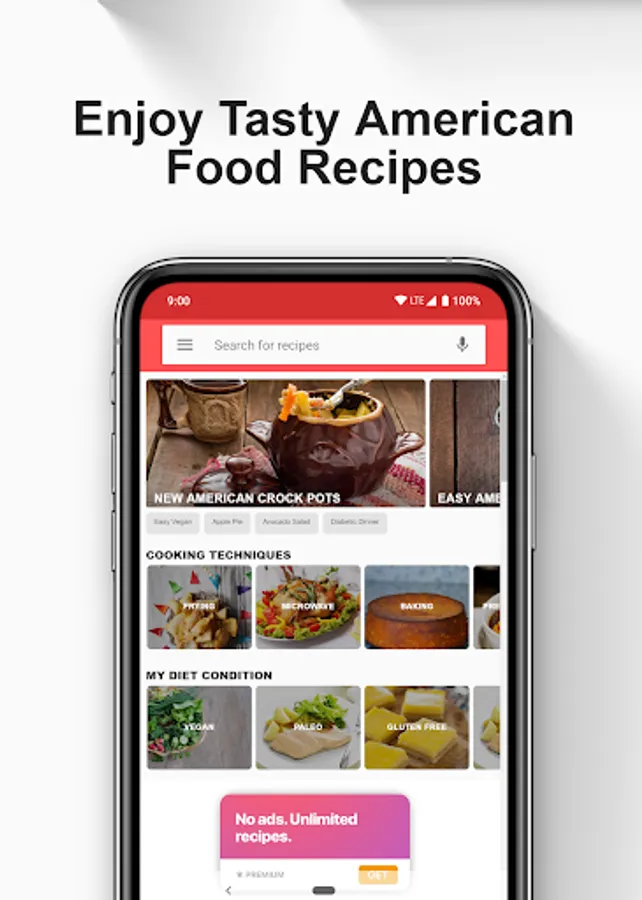 The American recipes app gives cuisine suggestions with allergies or on a diet plan like low carb keto. You can find plenty of American food recipes suitable for paleo, Mediterranean, raw food, detox, and healthy weight loss diet. It even has a special collection of vegan diet recipes suitable for Vegetarian meal plans. If you're suffering from any food allergies, we have egg-free, gluten-free, lactose-free, wheat-free, and seafood-free recipes.