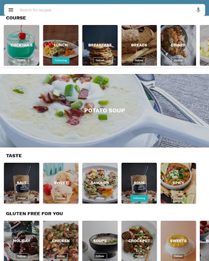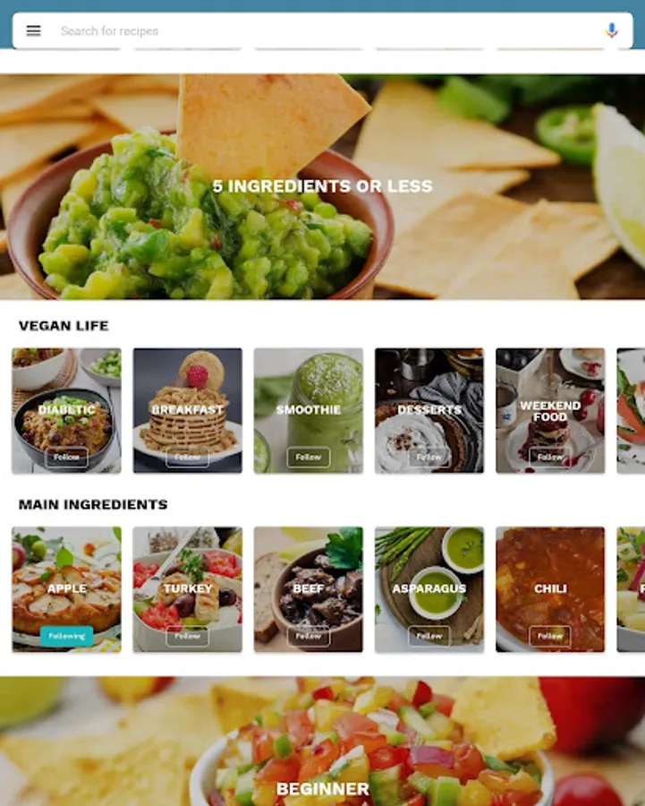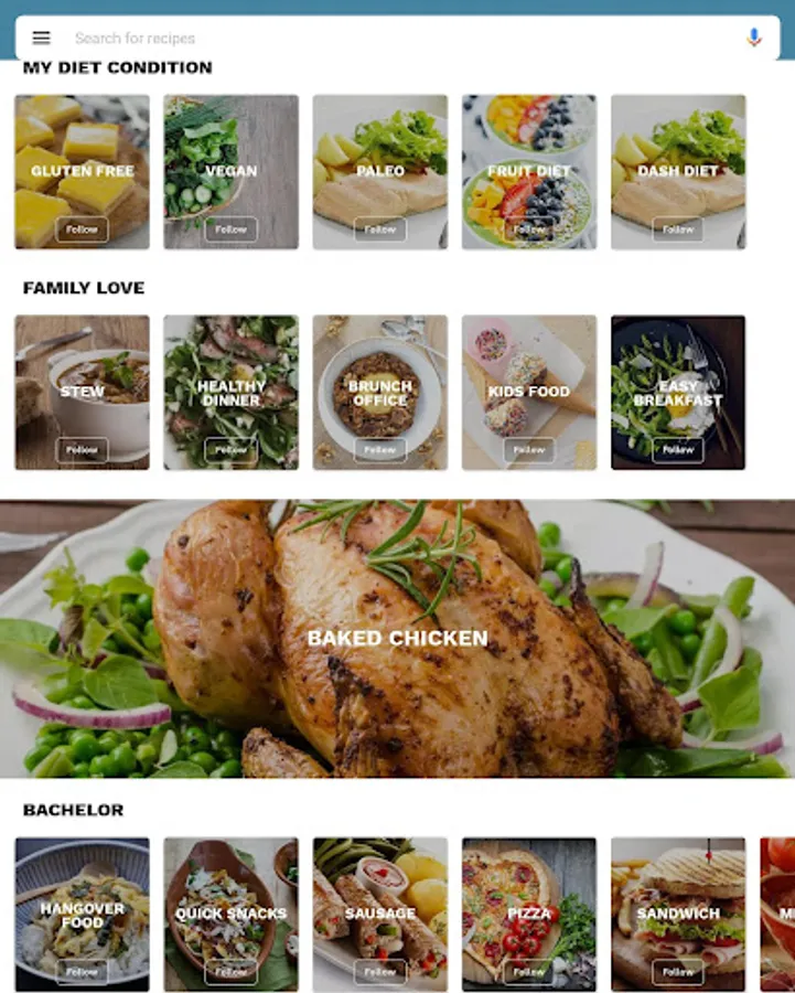 - Search healthy recipes according to your social plans, ingredients, dietary needs, difficulty, speed, cuisine, and more.
