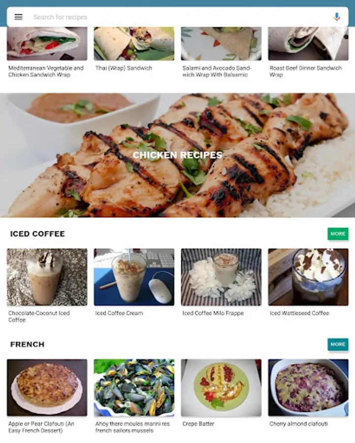 French Recipes app offers you many easy and healthy recipes. These include drink recipes, soufflé recipes, cake recipes, sandwich recipes, sauce recipes, flamiche recipes, and recipes for stew.