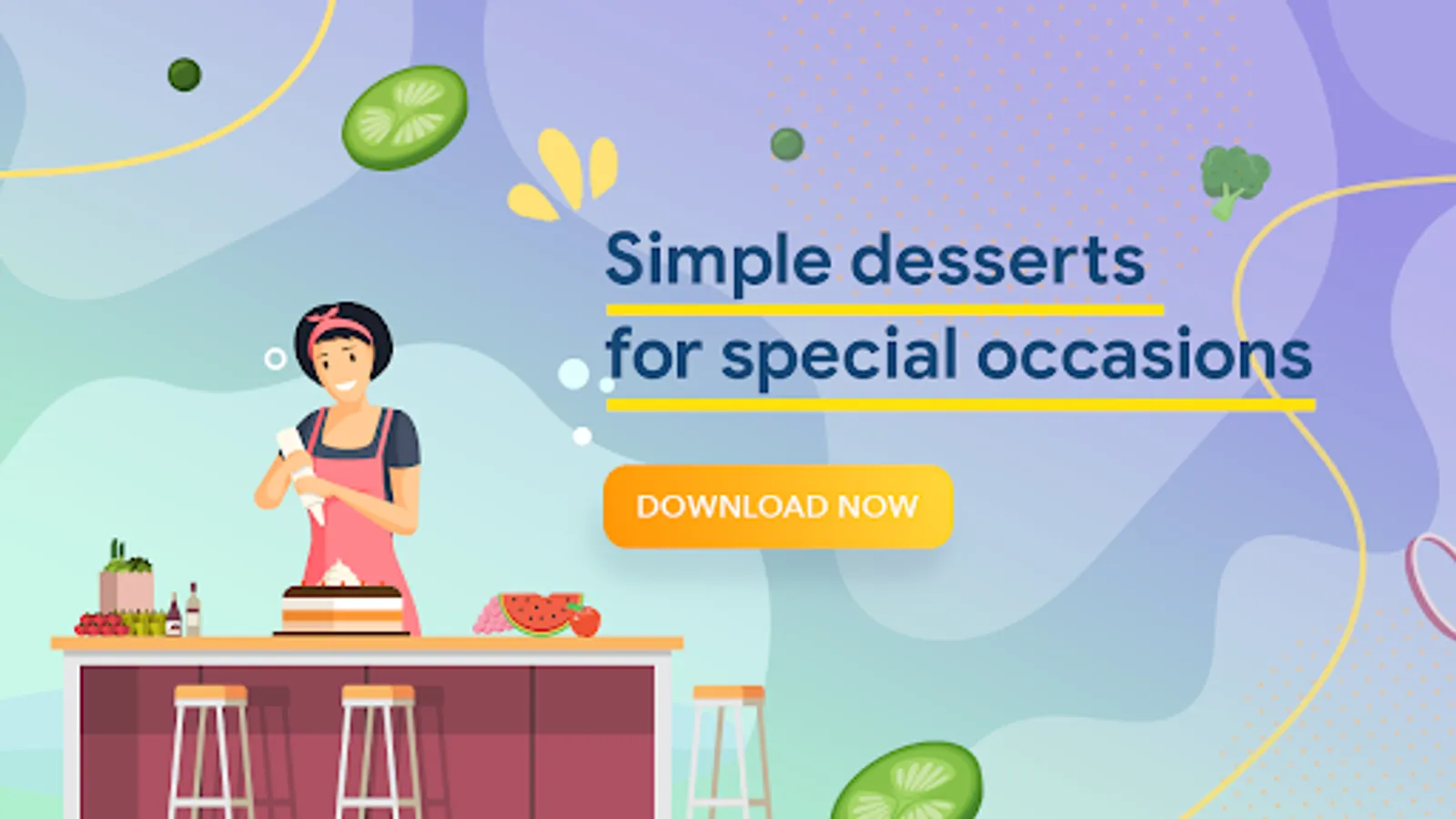 Every dessert recipe has easy step by step instructions with a photo. Get many healthy recipes for free in our dessert recipes app. Unlike other recipes app, the dessert recipes can be used offline. This makes our free recipes app for android a perfect fit for your kitchen.