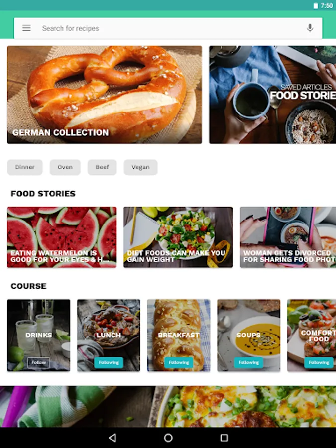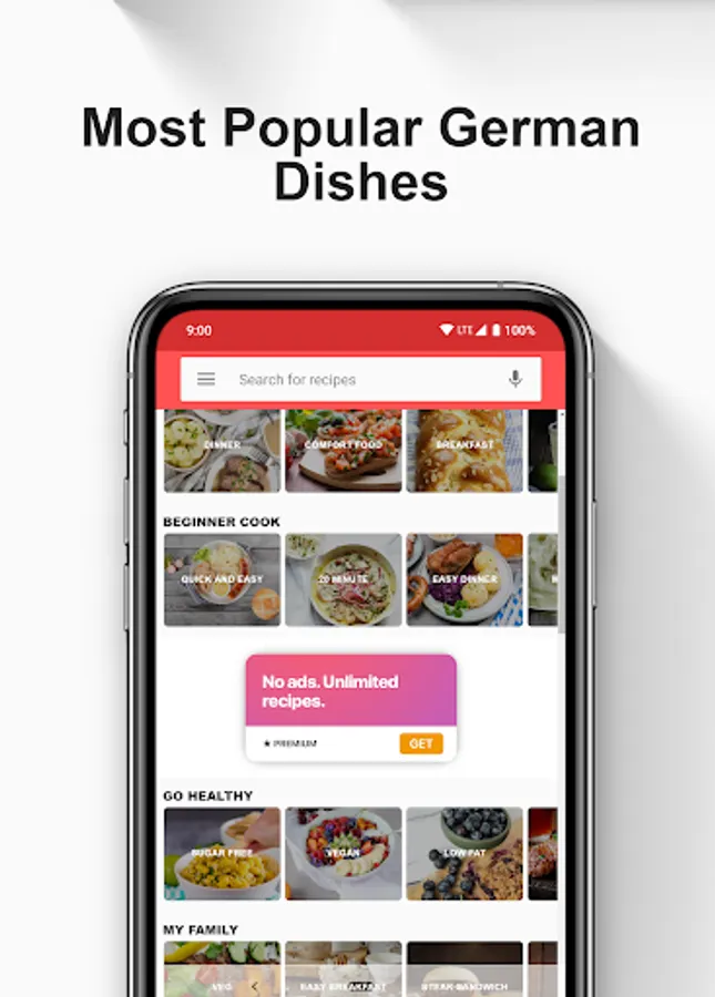 Our German food recipe app gives you lots of free cooking recipes for salad, flammkuchen, appetizer etc. Now that you've our traditional German recipes app, you no longer need to carry around bulky recipe books.