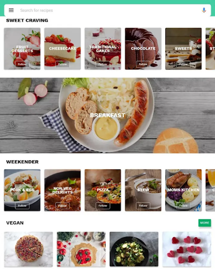 Add your favourite German food recipes to the app's favourites section. You can use the saved traditional German recipes offline. You can also create healthy German recipe collections on the basis of german cuisine, non-vegetarian, weekend party ideas, lunch ideas, cooking style etc.