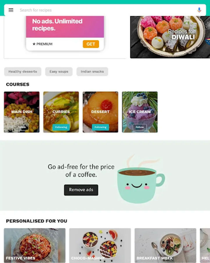 Our healthy Indian recipe app gives you lots of free cooking recipes for kulfi, pickle, etc. Now that you've our Indian food recipes app, you no longer need to carry around bulky recipe books.