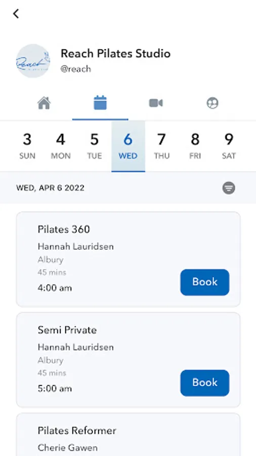 Reach Pilates app makes it very easy for you to manage your Reach Pilates account, book into our classes and events, watch our on-demand content, and keep in touch with us. You can easily message us if you have a question or want to share something with them. You can also follow our public feed to see any announcements we make, promos we run, or content we share.