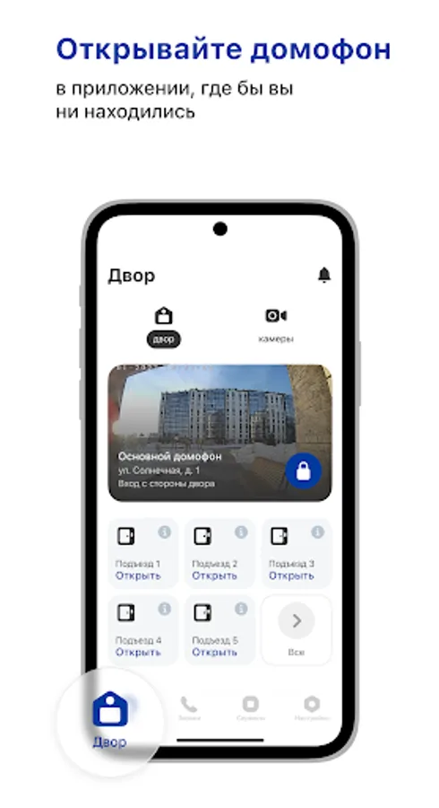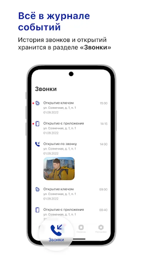 - open the door in one click from your smartphone;