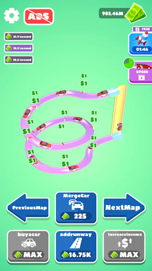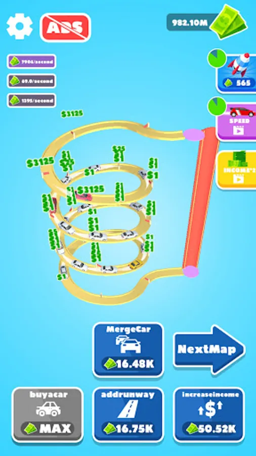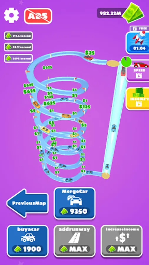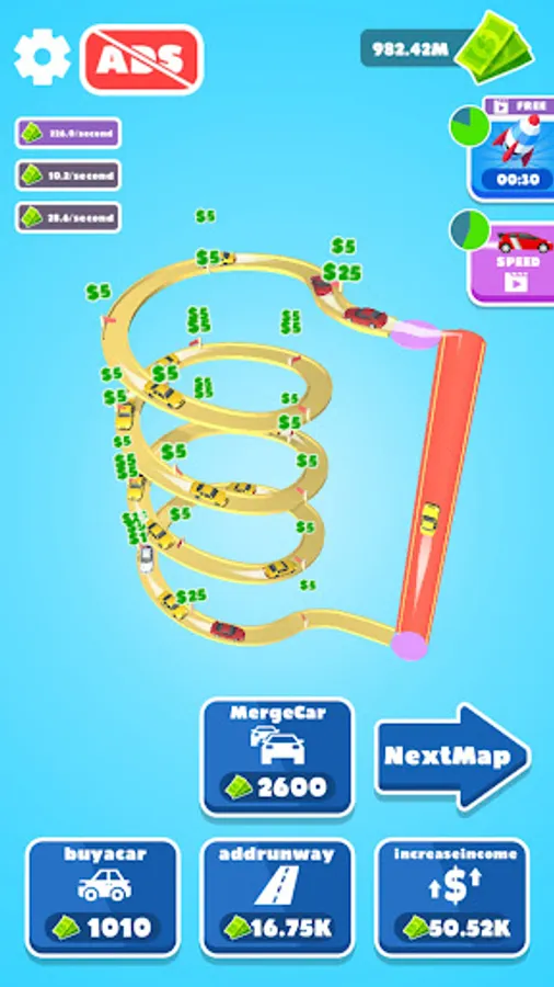 Add a car, 3 cars of the same level can be combined to unlock a car of the next level, and the income is higher.