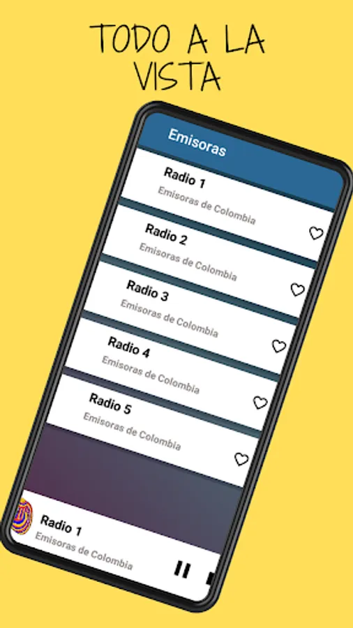 Its simplicity and color make it pleasing to the senses and a great motivation to continue listening to music from our Apps Radio.