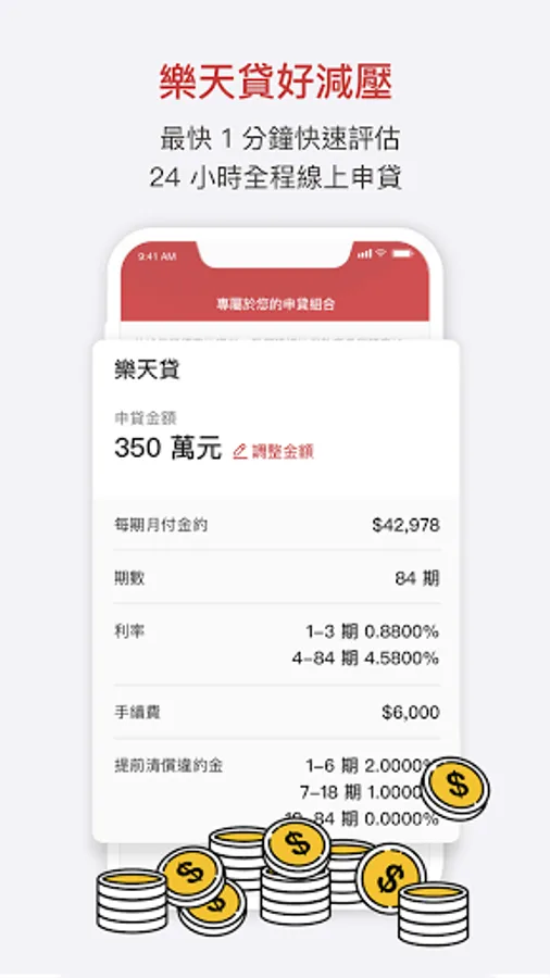 Apply for loans online throughout the entire process, and solve your funding needs 24 hours a day, with privacy and convenience.
