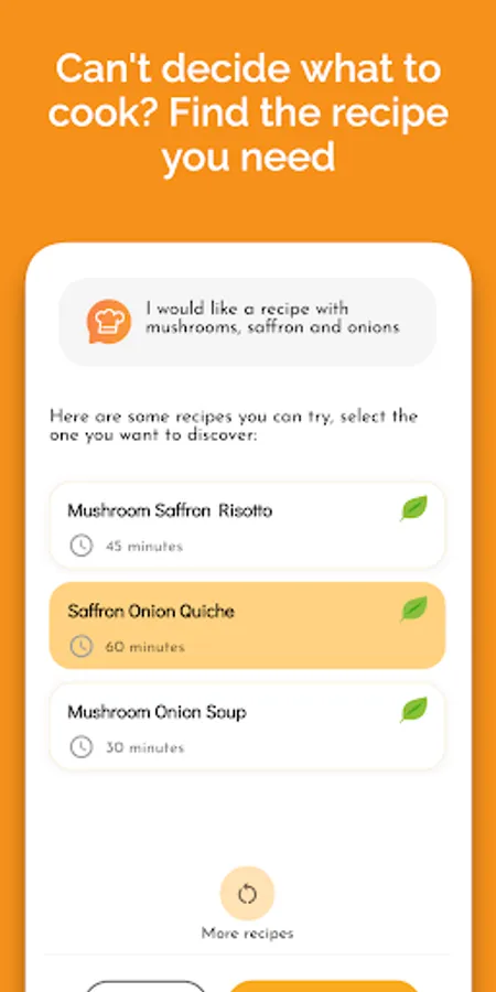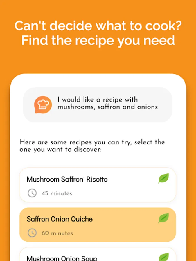 Do you have some saffron and zucchini at home? Ask the app for a recipe and discover new dishes to offer your family and guests.