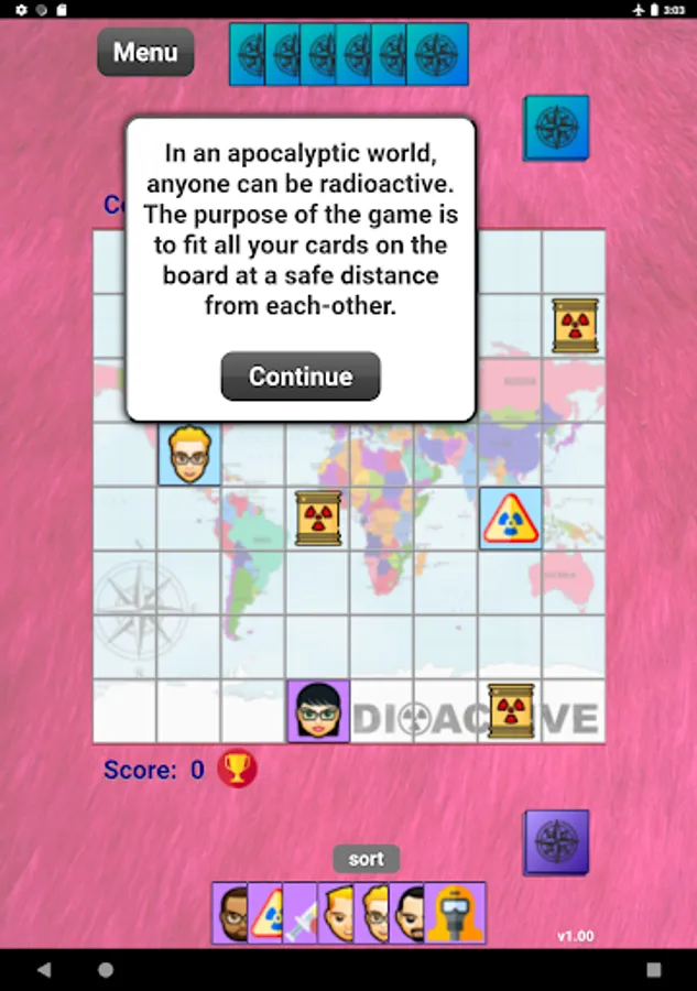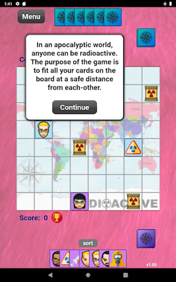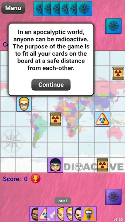 Radioactives is a fast-paced head-to-head board game. Play in a radioactive world, where you place your cards at a safe distance to avoid radiation. Use strategy and play all your cards before the AI opponent to win.