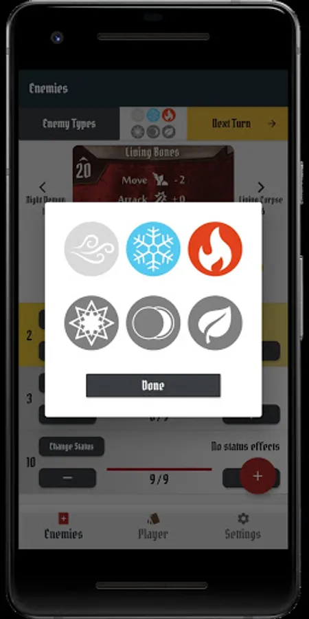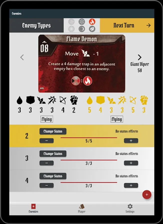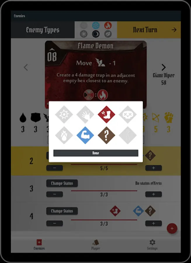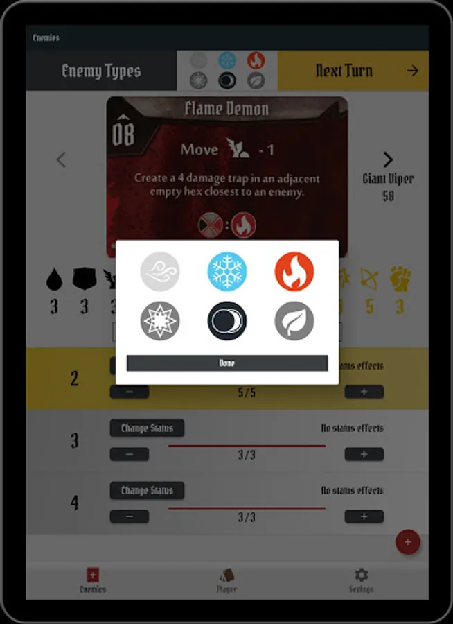 4 - You are all set! You can now quickly modify enemies HP, Statuses and manage active elements.