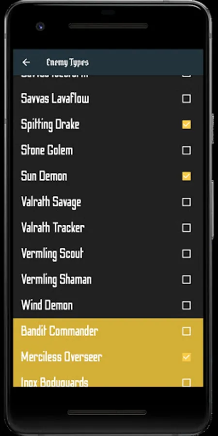 1- Select all active enemy types from the "Select Enemies" list.