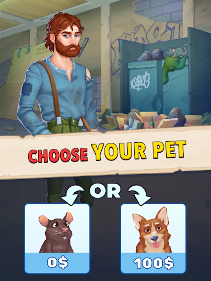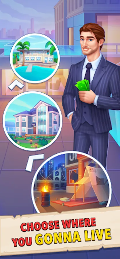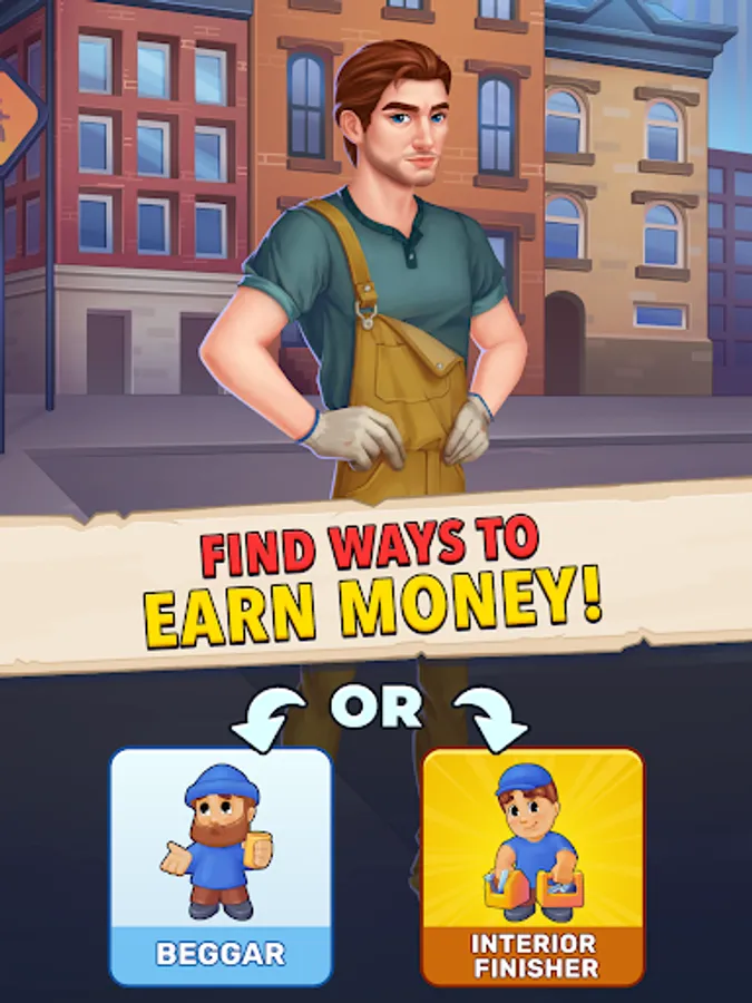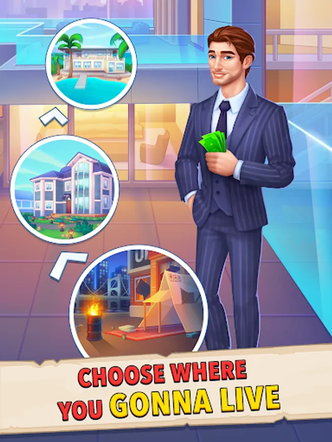 Every day step by step you are going from rags to riches and coming closer to your luxury rich life. Visit this hobo simulator every day and get posh rewards. Choose where to study and get an excellent education. Accomplish extra courses and trainings, and upgrade useful skills.