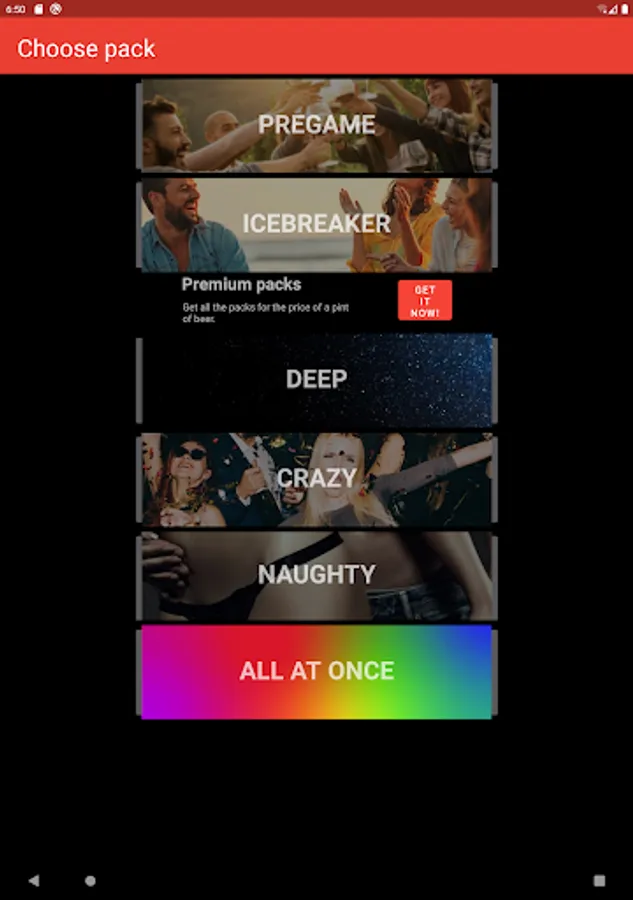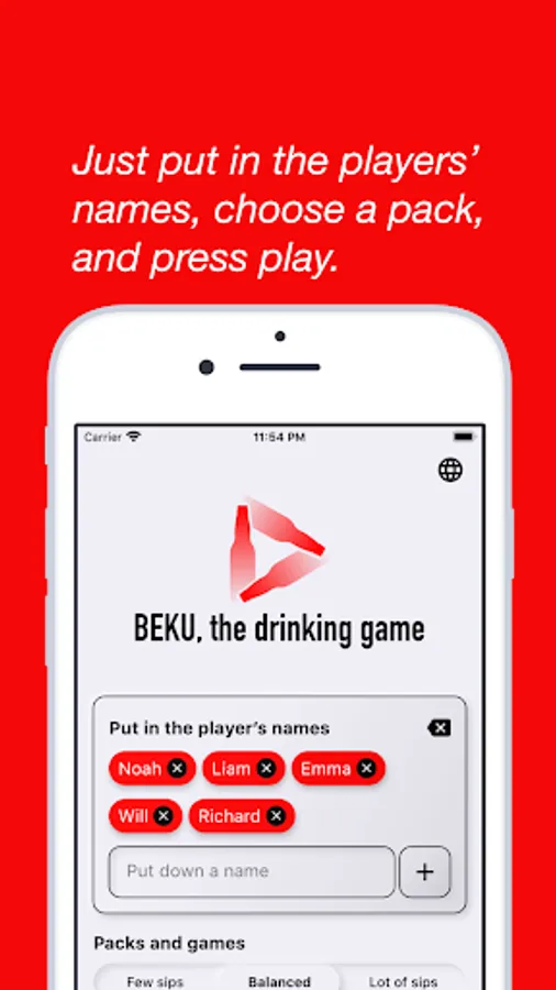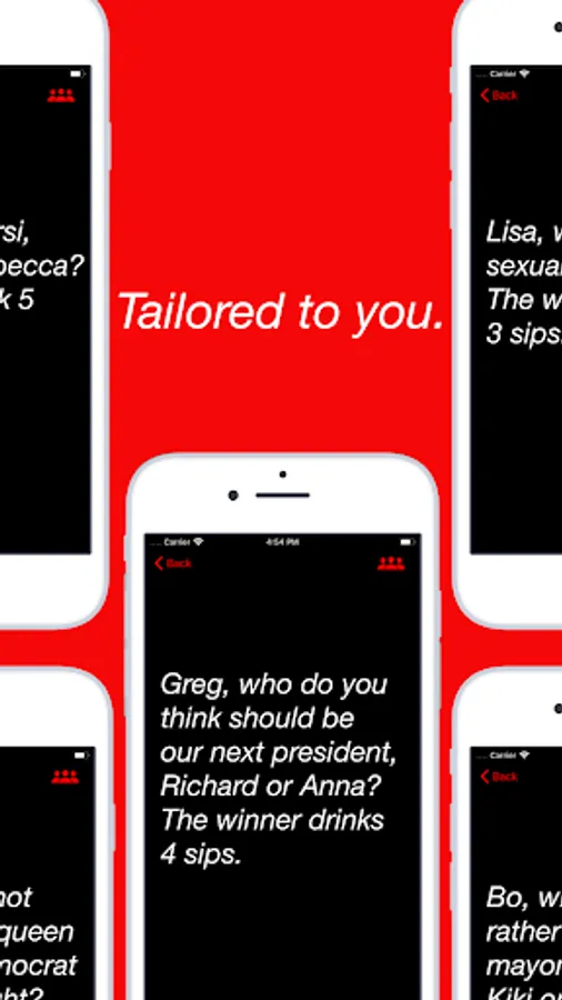 The app entertains with exciting games, challenges and thought-provoking questions. Just put the players' names in the app and press play. You are about to have an unforgettable night.