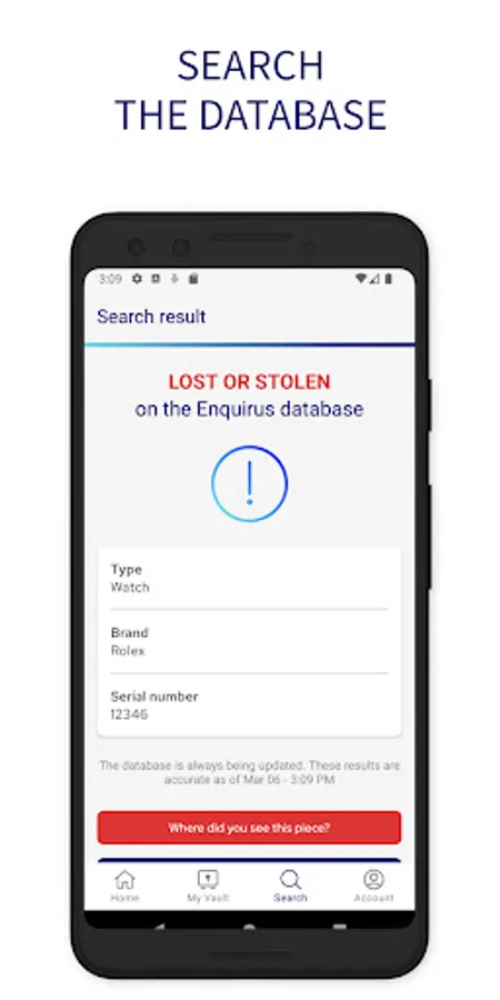 • Search the database when purchasing a piece on the second-hand market to check it is not stolen.