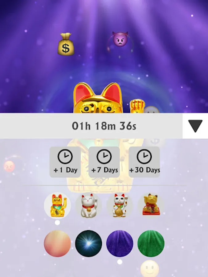 ○ Cute animations: you can visually see Maneki-neko bring in good lucks, and block bad lucks.