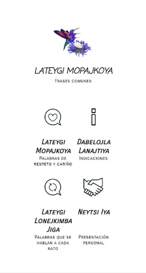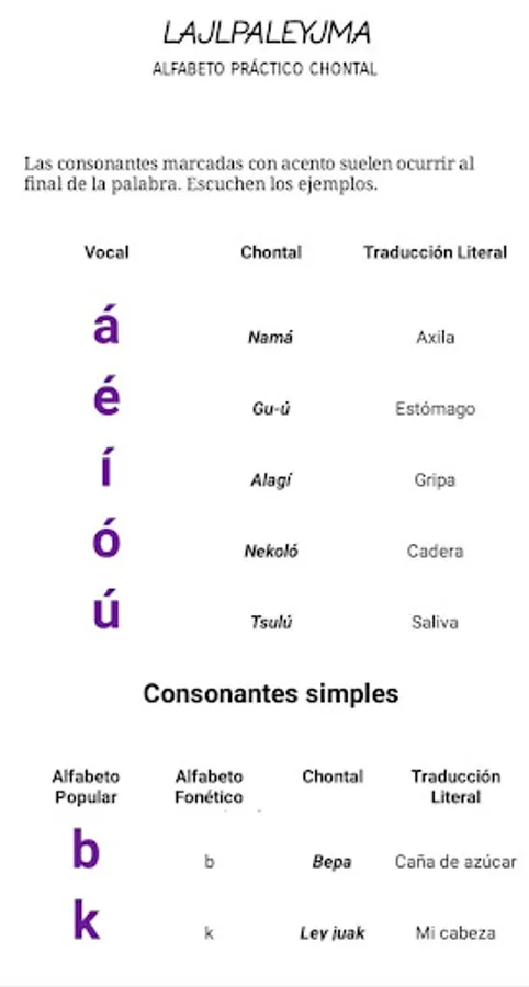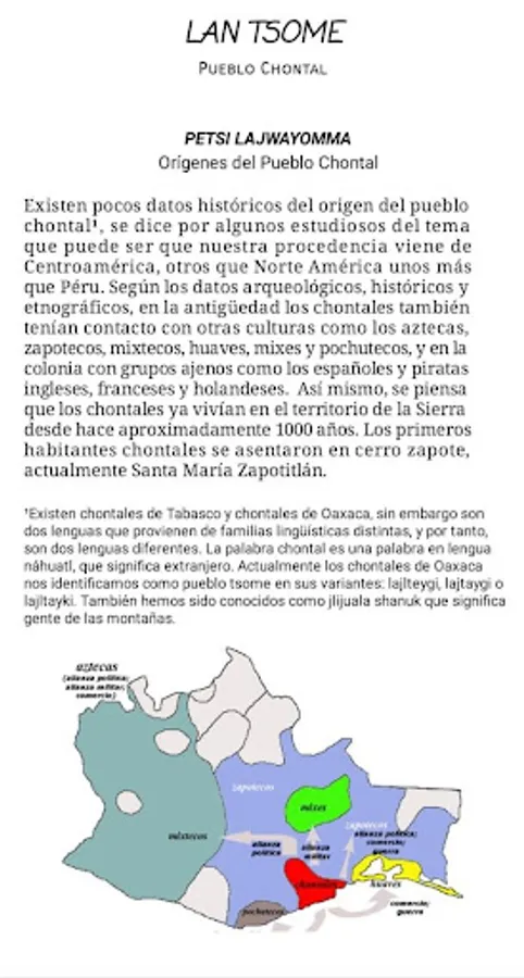 Ajlpaleyme Lajlteygi is also an interactive tool that allows you to visualize and listen in real time to the pronunciation, writing and meaning of the vocabulary and common phrases in Lajlteygi (Chontal), in addition to having a written Spanish translation.