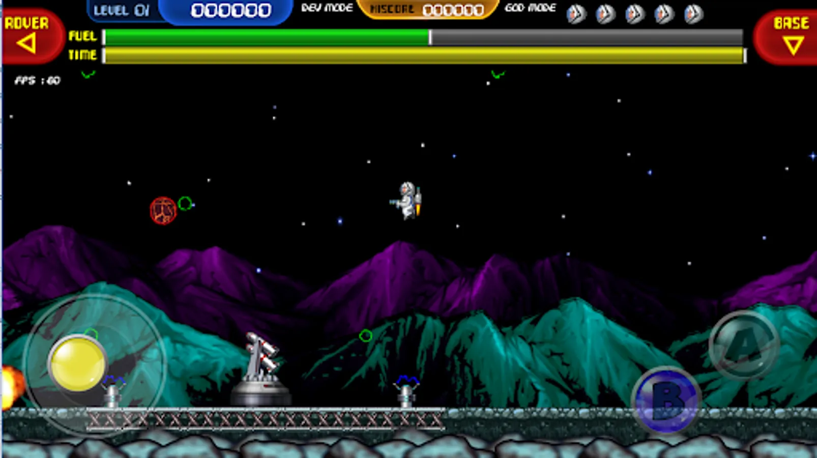 The aim of the game is to save the Planet Earth from destruction. Each alien base will launch 2 missiles, one at Earth and one at the Moon Rover, once a countdown timer has expired. To destroy the alien bases Jetman will have to travel to each base and drop a bomb on it. Each time the base is destroyed a new wave begins. Each wave will become gradually more challenging and also introduce new enemies.