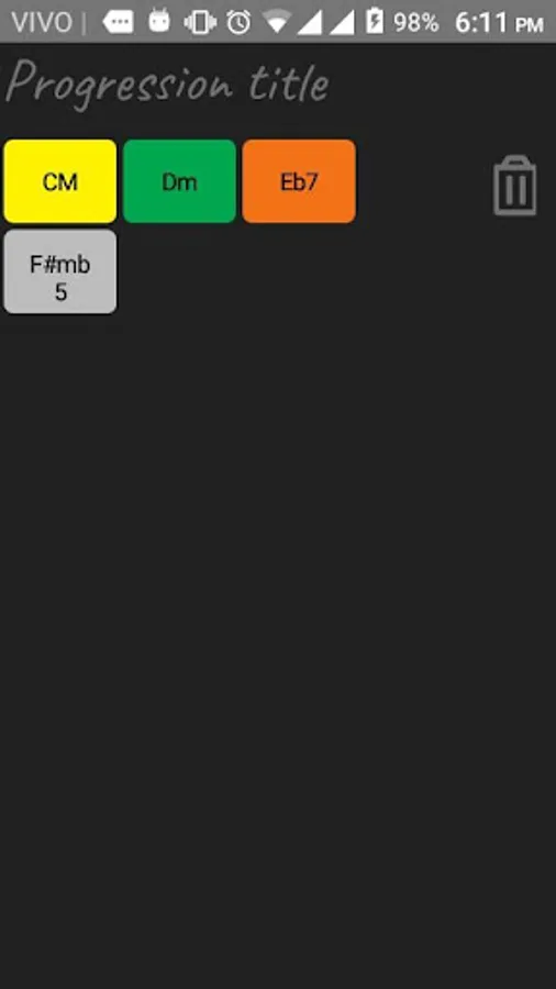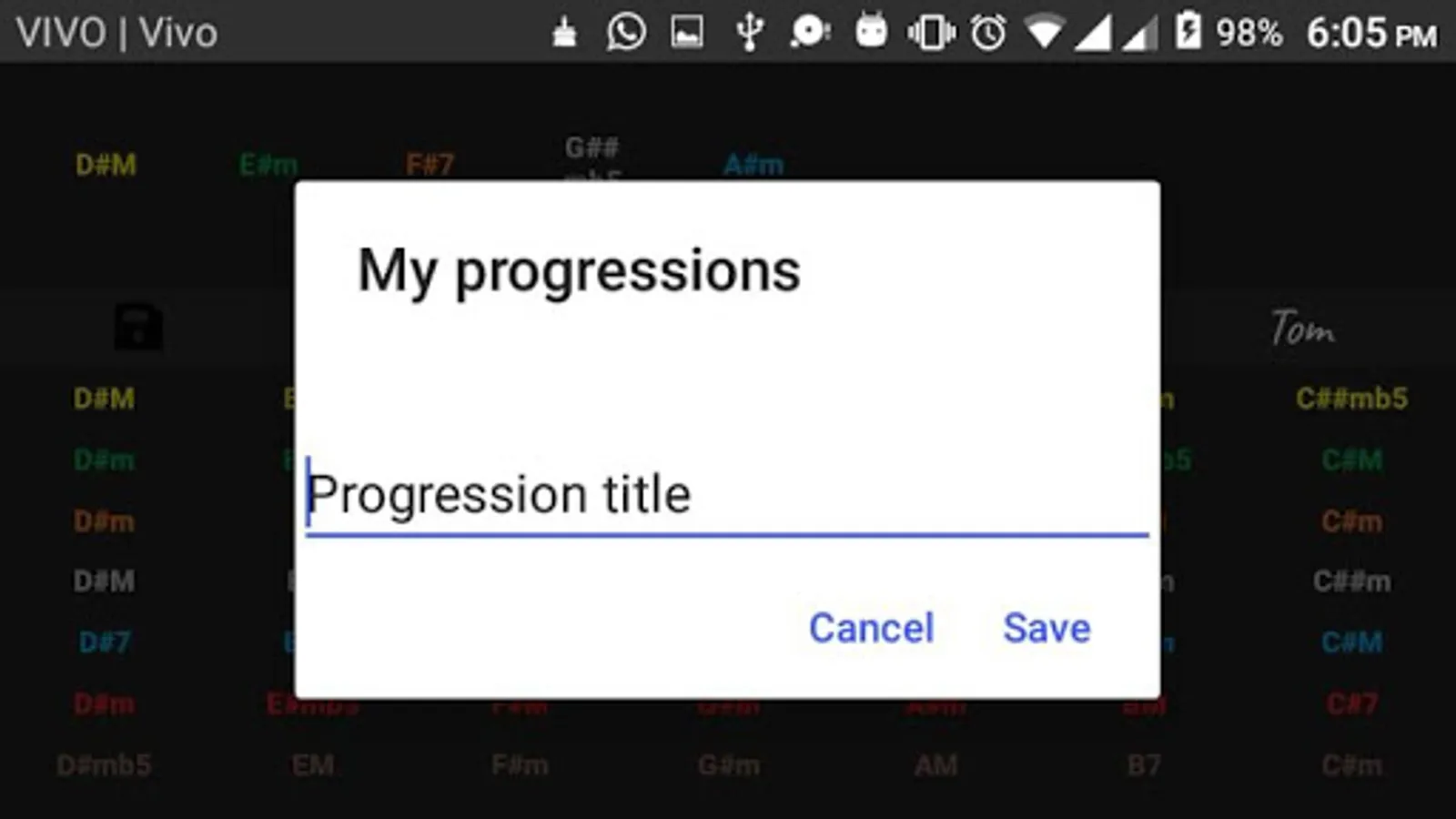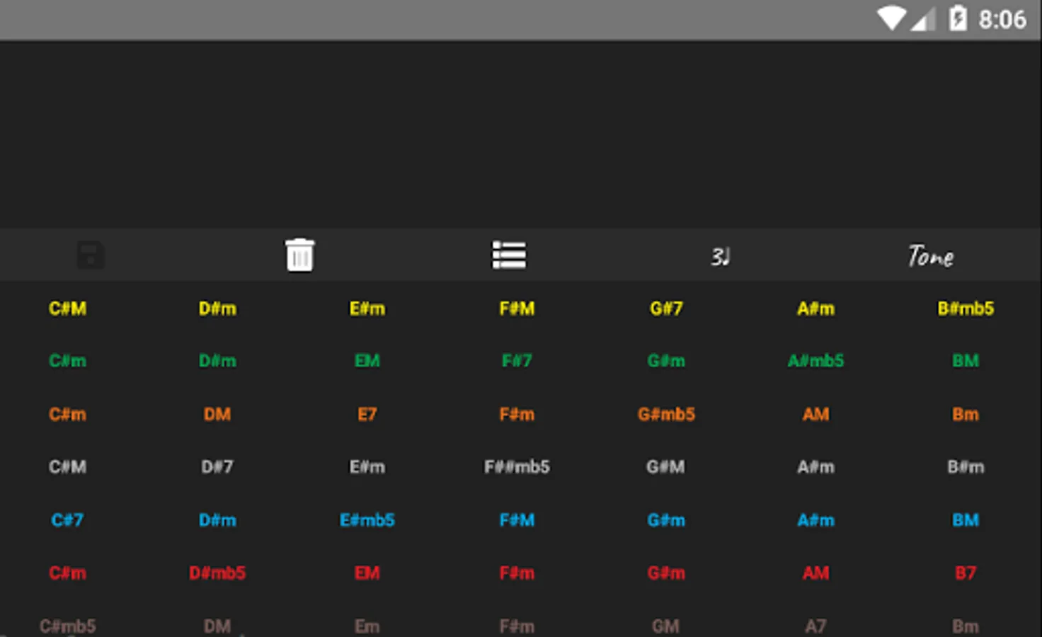Besides showing the 7 greek modes chords of a chosen tone, the App also offers the possibility to create and save progressions.