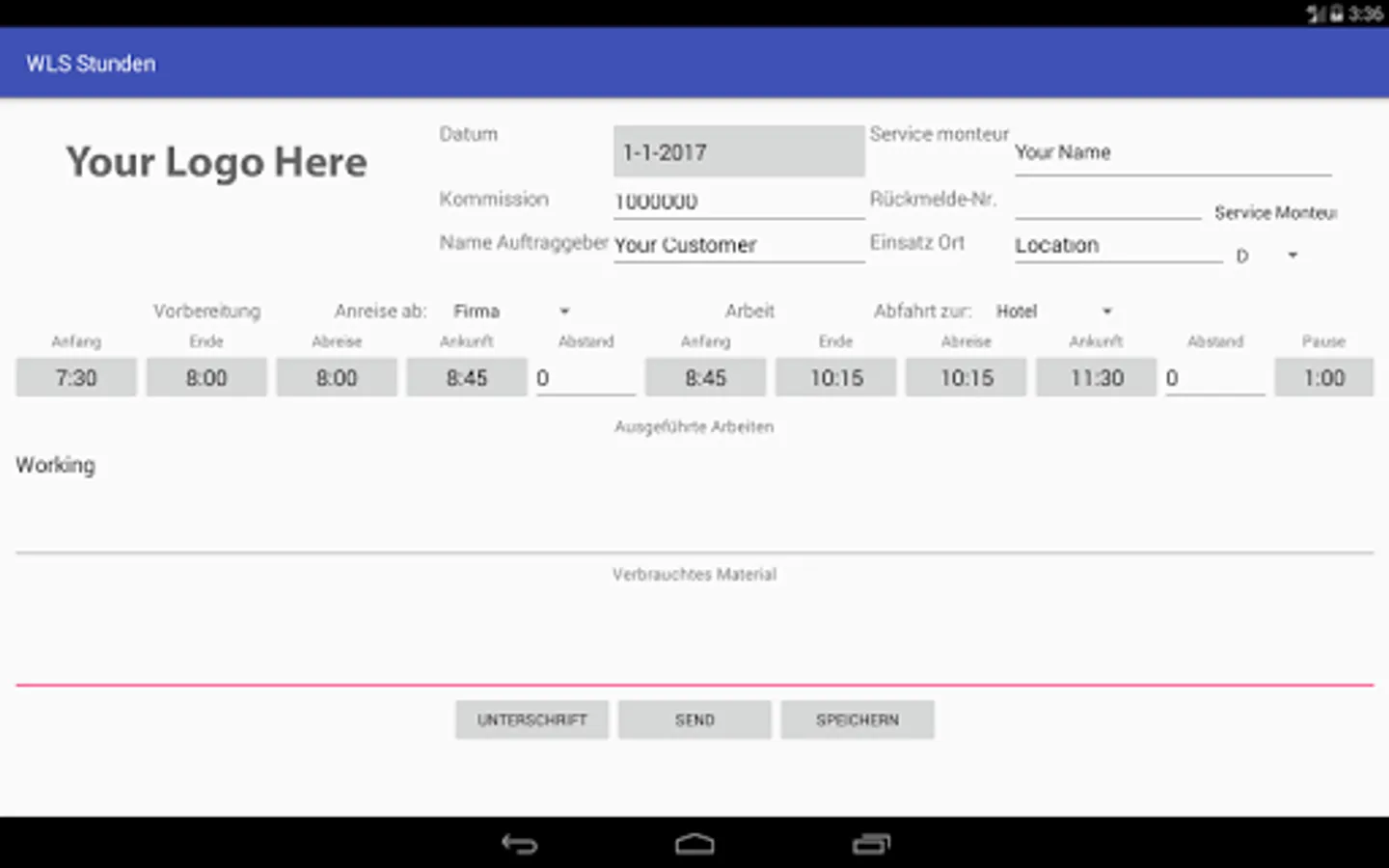 Ideal for field service technicians, many on their way to and from customers, which can directly be signed the hours worked by the customer. and then send it directly as a PDF document, for example to the administration and the customer.