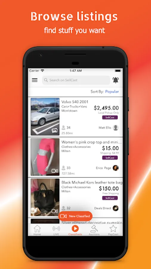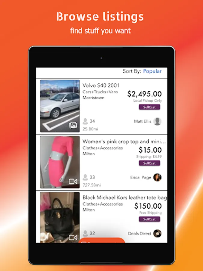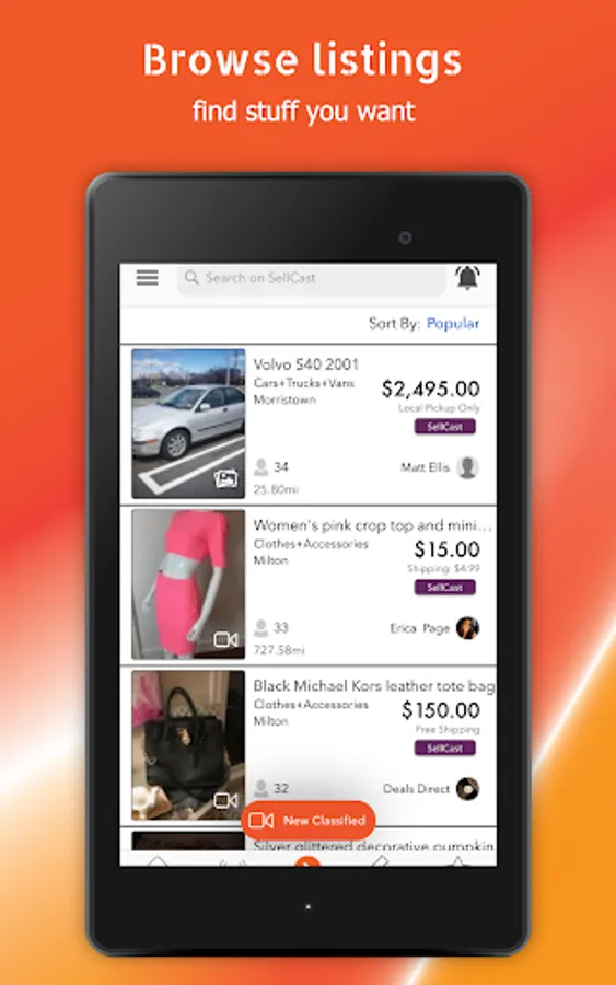 Are you looking to sell something, raise funds, or find a great deal? SellCast is here to help make your life easier. It’s where anyone can go to sell their stuff, find great deals, or even crowdfund — all using LIVE video! SellCast even handles payments instantly and securely all from within the app.