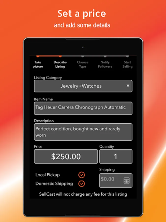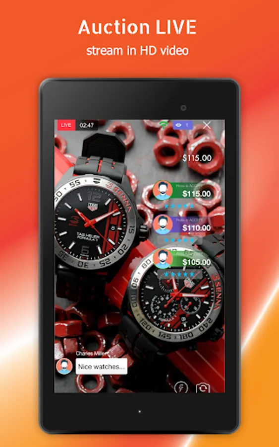 SellCast takes the online sales experience and tailors it to the buyer. Want to sell a watch? It’s easy! Just enter the description of the item you are selling detailing all the features about the watch, set a price, & press START! It’s that easy! No blurry photos! Buyers see exactly what they’re getting in high definition LIVE video broadcast before paying a single penny!
